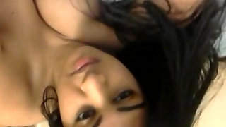 Busty and mischievous dark skin Desi babe rides on her man