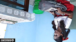 I see my maid cleaning the house alone I hugged her and commenced fucking her rump