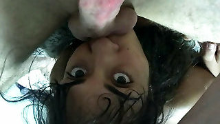 Indian girl gets a grubby upside down facefuck from a white guy, interracial