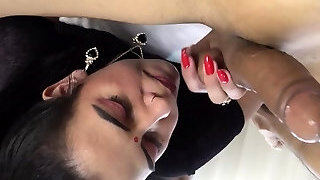 My Indian Girlfriend sucking my chest and providing hand job till i jizm